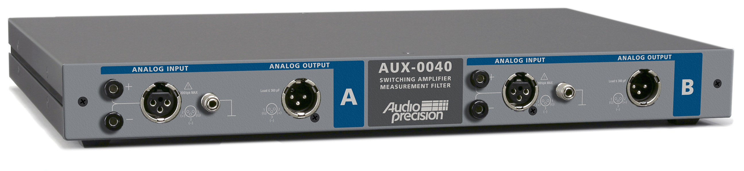 aux-0040 是一种双通道无源滤波器, 具有 20 hz 至 40 khz 的通带。它设计用于双通道分析仪, 包括 apx555、apx52x 系列和2700系列测试系统。