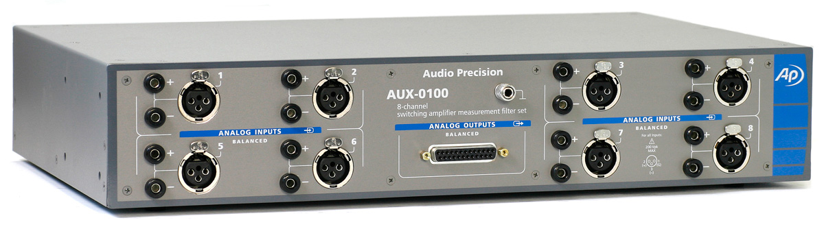 aux-0100 是一个八通道无源低通滤波器, 具有 20 hz 至 20 khz 的通带。它设计用于 apx58x 系列音频分析仪。
