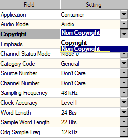 通道状态位可以以纯英语显示和设置, 也可以设置为原始十六进制值。可以读取和设置所有通道状态值,包括音频 模式、 采样频率、字长和样本字长度。用户状态位通常用于携带辅助数据,其使用不是预定义的。它们可供最终用户或设备制造商携带其他信息。使用 APx,您可以设置和读取十六进制形式的用户位。 ___________________________________________