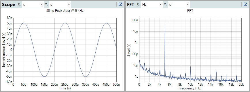 因此,抖动振幅是时间位移的度量,以时间单位表示,无论是秒数还是单位间隔 (UI)。抖动频率是发生此相移的速率。与其他噪声或干扰信号一样,抖动调制信号可以是纯正正波、复杂波形或具有完全随机的特性。