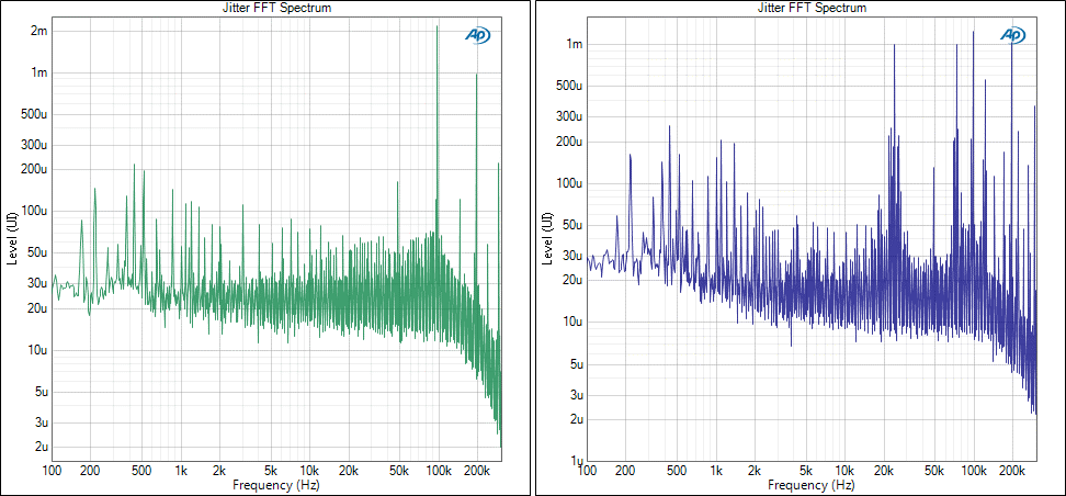 使用配置高级主时钟选项 (APX-AMC) 的 APx APx 分析仪测量抖动,可以在数字输出端口或接收器端口上生成音频和校准抖动(例如,数字串行上的位时钟输出)接收器输入),并测量数字串行接收器位时钟输入上的抖动。