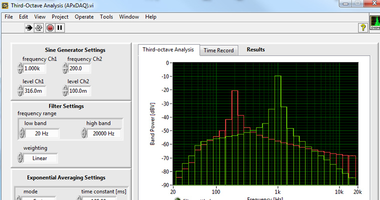 除了音频测试之外,用于APx515的LabVIEW DAQ驱动程序还为非音频信号采集开辟了一个可能的世界。用户可以轻松地将高质量、健壮的APx515分析仪前端集成到任何LabVIEW应用程序中,包括从DC到90 kHz的信号生成和分析。潜在用途包括振动分析、声强、超声波、次声、动态信号分析(如力、压力、应变)、电源质量等。