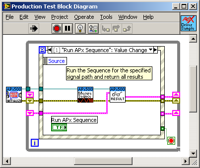 APx LabVIEW驱动程序是LabVIEW子程序的集合,使用户能够使用高级LabVIEW典型函数,以最少的编程步骤访问APx500应用程序编程接口(API)中可用的功能。使用这个驱动程序,结合APx500软件和微软的.NET,LabVIEW用户可以使用干净、简洁的LabVIEW代码开发APx应用程序。如上所述,APx LabVIEW驱动程序与APx555、APx52x系列、APx58x系列和APx515音频分析器兼容。