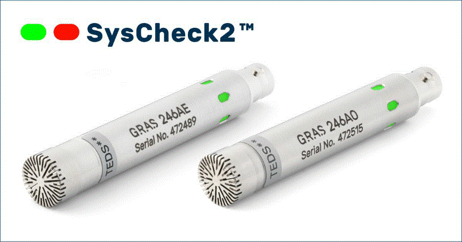 GRAS Sound & Vibration, 作为 Axiometrix Solutions 其中一间子公司, 发布两款具有内置 SysCheck2™ 功能 的麦克风,能够对整个测试链路进行远程控制, 快速检测:GRAS 246AE ½ʺ CCP 预极化自由场 SysCheck2™ 麦克 风,以及 GRAS 246AO ½ʺ CCP 预极化压力场 SysCheck2™麦克风。