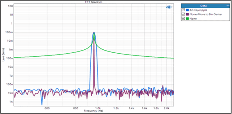 通过在FFT窗口下拉列表中进行新选择,对某些类型的信号改进了非同步信号的无窗分析(见图1)。通过选择 “无–移动到垃圾箱” 窗口选项,可以使用此新功能。选择后,确定采集信号中的主音,并对采集进行重新采样,使信号位于最近的FFT频率单元的中心。